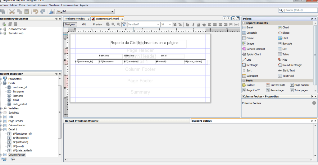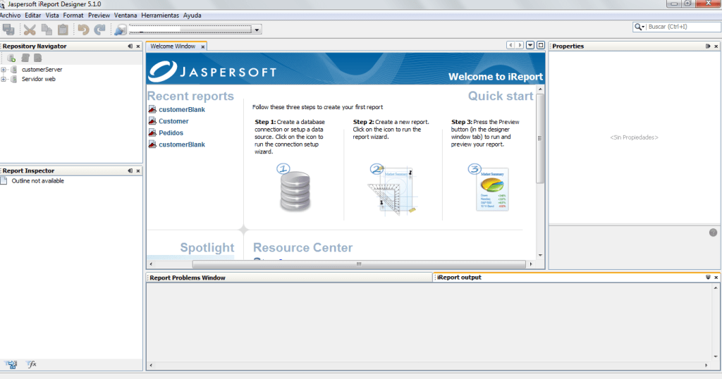 Escogí un problema sencillo para poder probar las funcionalidades y poder avanzar con un tiempo prudente para poder conocer los 3 servicios de Jaspersoft.