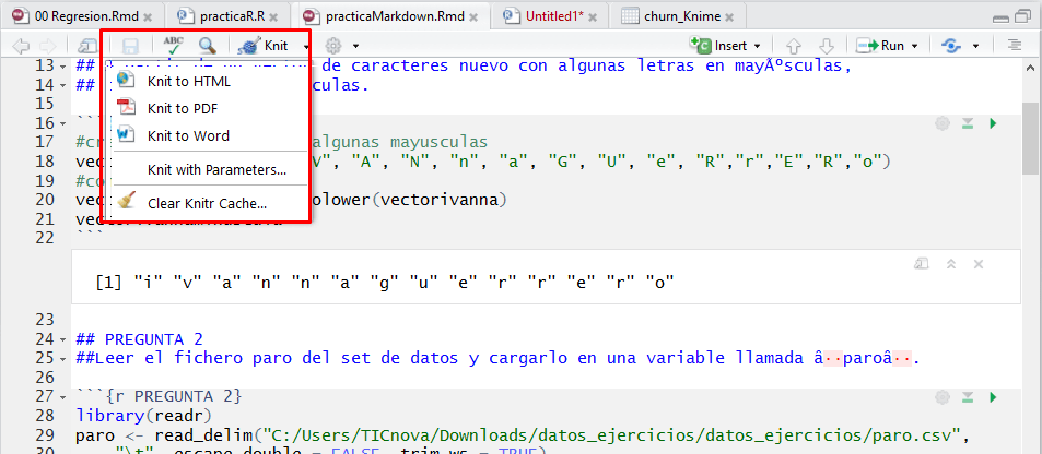 Por medio de knit especificas el formato que te gustaria exportar tu codigo en R.