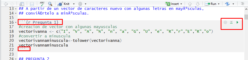 - R studio muestra justo en la esquina de cada bloque un signo de ejecutar, lo que haría que el entorno verifique solo el bloque de código que está dentro de los tags